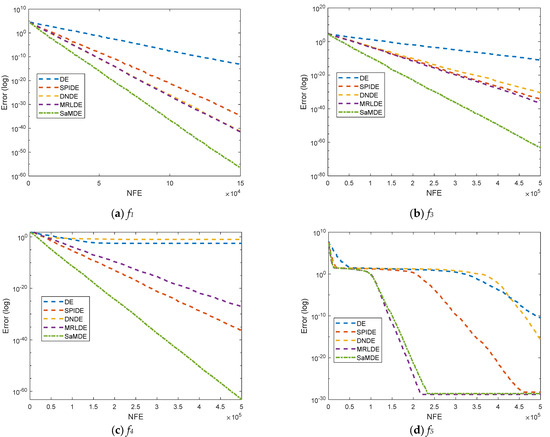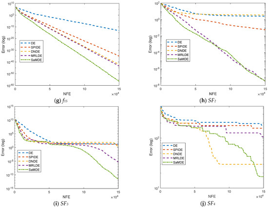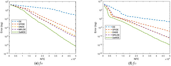 Figure 8 represents the convergence graphs’ potential molecular energy problem at n = 10 and 20. The X-axis and Y-axis represent the NFE and its corresponding error value, respectively. By the graphs it can be easily seen that SaMDE performs faster and confirms its robustness over other variants.