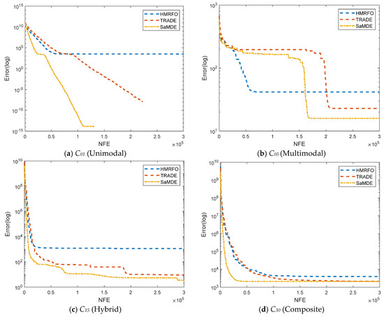 To analyze the convergence behavior of SaMDE, the convergence graphs of SaMDE with TRADE and HMRFO on selected functions C1, C5, C15 and C30 are represented in Figure 7. Graphs confirm the robustness of SaMDE to achieve the accuracy rapidly.