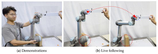 29] presented a work for solving the problem of dual-space synchronous generalization. They considered the generalization of task space while using null space to generalize robot joint space trajectory, but they did not consider the problem of interaction between humans and robots, and could not be used for real-time interaction scenarios.
