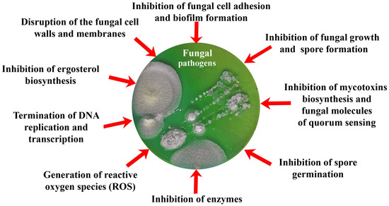 Currently, there is an urgent problem of efficient prevention of plant, animal and human diseases triggered by pathogenic fungi [1,2,3]. Infections that cause plant diseases affect food crops annually and destroy the harvested crop during storage, which entails the formation of serious social and economic problems. In addition, among plant protection products, there are many fungicides which are toxic to humans, as well as those that have a negative impact on agrobiocenoses, causing environmental pollution and the accumulation of remaining amounts of pesticides in agricultural products [4]. Filamentous fungi (Aspergillus, Cladosporium, Penicillium, Stachybotrys, Fusarium) synthesizing various mycotoxins are particularly dangerous, both at the stage of crop growth and at the stage of storage [5].