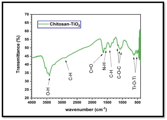FTIR of the synthesized chitosan–TiO2 nanocomposite.