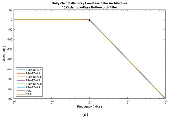 The results obtained by applying the I-TSA method to the LPAF problem are given in this section. The values obtained as a result of the least error value obtained using the I-TSA method are given in Table 2. R1 (kΩ), R2 (kΩ), C1 (nF) and C2 (nF) values for each stage are shown in Table 2.