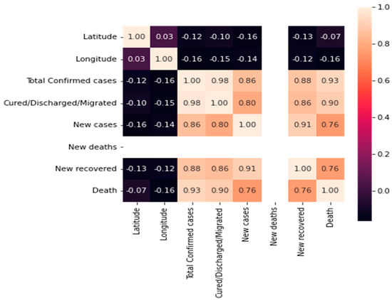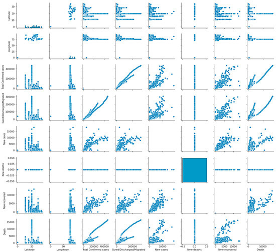 Latitude and longitude are geographic coordinates that can be used to track the spread of COVID-19 across different regions and countries. By knowing the location of confirmed cases, health officials can identify potential hotspots and take targeted measures to contain the spread of the virus. Moreover, latitude and longitude information can be used with other demographic and environmental data to better understand the factors contributing to the spread of COVID-19, such as population density, air pollution levels, and weather patterns [50].
