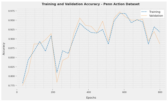 TA and VA examination of the SOSDCNN-HAR approach on the Penn Action Dataset.
