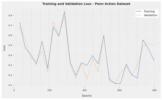 The TL and VL obtained by the SOSDCNN-HAR algorithm on the Penn Action Dataset are recognized in Figure 6. The investigational result concluded that the SOSDCNN-HAR methodology has achieved minimum values of TL and VL. Especially, the VL appeared to be lesser than the TL.