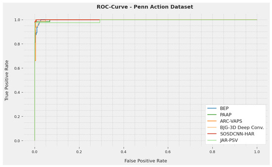 ROC curve examination of the SOSDCNN-HAR approach on the Penn Action Dataset.