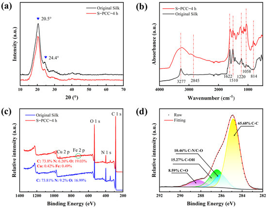 3.3. Surface Composition Analysis of Silk Fabric Modified with PCC