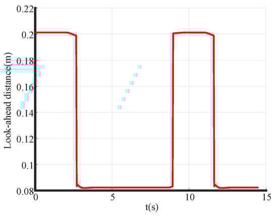 As analyzed in the previous section, the look-ahead distance not only has a significant impact on the tracking effect but also affects the operational stability of the mobile robot to a certain extent. However, in a traditional PP algorithm, the look-ahead distance remains a constant value, which lacks the ability of randomization. Based on human driving habits, the look-ahead distance should correlate with parameters such as speed and path conditions.
