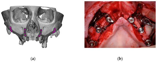 - Carretero, J.L.C.; Vera, J.L.D.C.P.d.; García, N.M.; Martínez, P.G.; Martínez, M.M.P.; Niño, I.A.; Cuéllar, I.N.; Cuéllar, C.N. Virtual surgical planning and customized subperiosteal titanium maxillary implant (CSTMI) for three dimensional reconstruction and dental implants of maxillary defects after oncological resection: Case series. J. Clin. Med. 2022, 11, 4594. [Google Scholar] [CrossRef]
