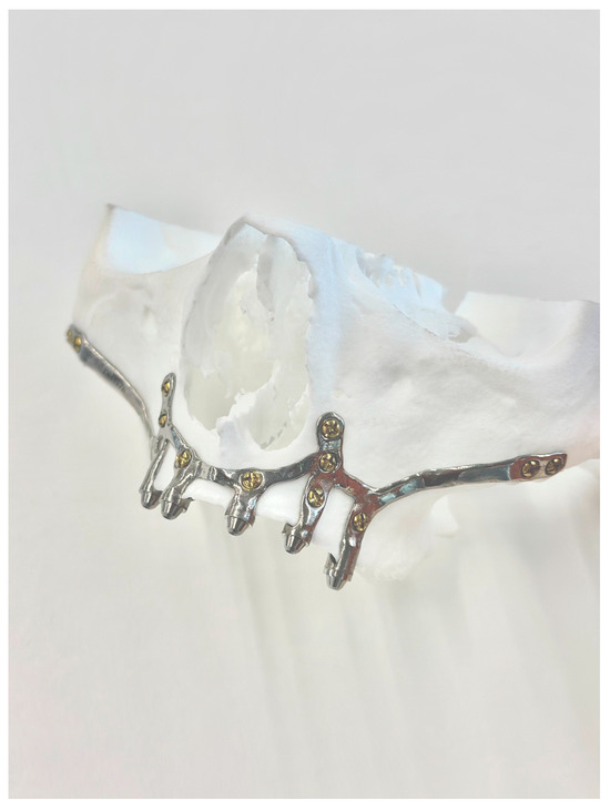 Figure 1. Example of a suitably designed customized subperiosteal implant (CSI) with smooth transitions (without sharp angles) between the frame and the prosthetic connections. - 2.6.