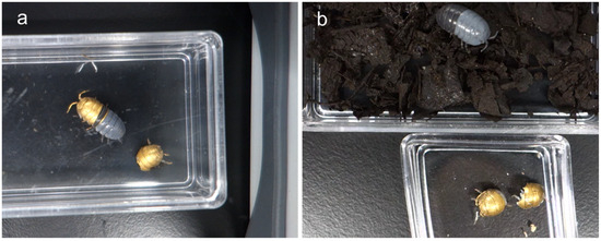 Images of (a) half-molted and (b) fully molted A. vulgare specimens.