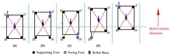 To enhance the flexibility of robot motion, this paper selected the foot-point sequence of the left front foot (lf), right front foot (rf), right back foot (rb), and left back foot (lb) along the robot motion direction, as illustrated in Figure 8.