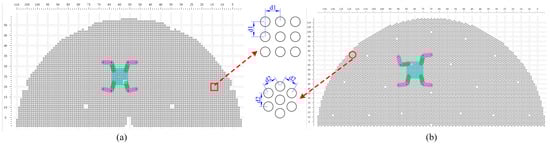 The experiments were conducted on two types of tube plates, as illustrated in Figure 9. The algorithm’s hyperparameters are shown in Table 2, utilizing the PyTorch framework with the Adam optimizer. The training iterations and reward function parameters and were correlated with the robot’s maximum step length , as outlined in Table 3. Moreover, represents the number of foot-points that satisfied all possible inverse kinematics conditions, which was determined by the size of the robot and the hole spacing.