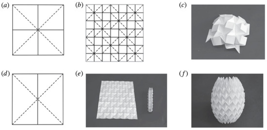 - Nojima, T. Origami Modeling of Functional Structures Based on Organic Patterns; Kyoto University: Kyoto, Japan, 2002. [Google Scholar]