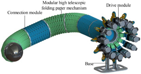 Continuum robot with four modules following the Yoshimura pattern, intended to achieve high elongation [20].