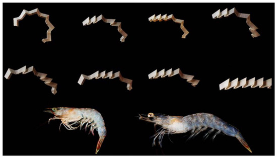 Jin et al. [18] designed an origami robot inspired by worm biomechanics that uses a paper-knitting method to perform complex movements and tasks. The backbone of the robot can flex and deform under tension, compression, and bending, and it is propelled by magnetic forces and torques. The robot can clear hurdles, scale walls, and move freight, as shown in their experiment’s numerical simulations and theoretical analysis. The robot is low-cost, lightweight, and flexible, and can be used in various environments. Ze et al. [19] presented a “small-scale origami crawler” based on a Kresling dipole inspired by the crawling motion of earthworms. This magnetically operated crawler is proposed for biomedical application, and consists of a four-unit Kresling origami assembly that can navigate in restricted spaces. While Ze et al. aimed for smaller versions of their Kresling crawler, it would also be interesting consideration to consider a larger scale and its implications. Meanwhile, Wei et al. [20] addressed the limitations of soft robotics by increasing the bending angle, elongation rate, and movement flexibility of a tubiform origami structure inspired by annelid somite joints. They used a Ni–Ti memory alloy wire for actuation by eliminating negative Poisson ratio and removing material, which enabled efficient and flexible extension (Figure 7) [20].