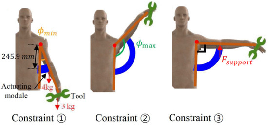 Seo et al. [42] used a fabric-integrated actuation module with an origami design to increase the strength and supporting force of soft pneumatic actuators. In contrast to conventional paper-based origami structures, this module features a stiff fabric origami pattern that uses less air and requires more effort. Specifically, the actuation module for the Yoshimura pattern was mathematically analyzed to adjust all design parameters in order to support the upper human limb. The module was experimentally validated lifting up to 7.5 kg at a pressure of 50 kPa or less, which is suitable for helping a person move their arm while holding a tool. The module was intended as the basis for a wearable system that would convert natural arm motion for overhead jobs (Figure 18) [42]. While the research was conducted and inspired by human limbs, it could also be tested beyond these limits to enhance human capabilities through robotics engineering that could take advantage of optimal origami design.