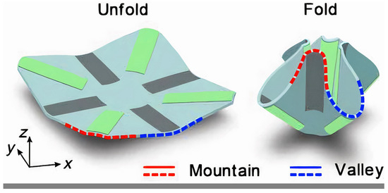 - Rus, D.; Tolley, M.T. Design, fabrication and control of origami robots. Nat. Rev. Mater. 2018, 3, 101–112. [Google Scholar] [CrossRef]