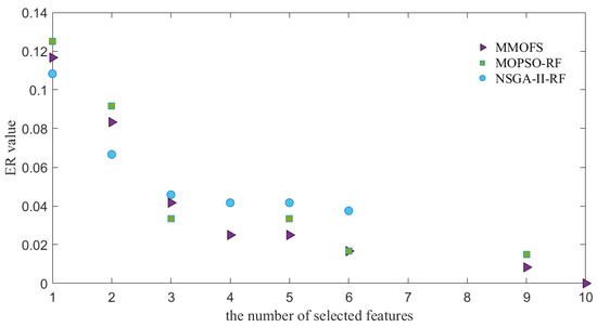- Liang, J.; Yang, J.; Yue, C.; Li, G.; Yu, K.; Qu, B. A multimodal multiobjective genetic algorithm for feature selection. In Proceedings of the 2022 IEEE Congress on Evolutionary Computation (CEC), Padua, Italy, 18–23 July 2022; pp. 1–8. [Google Scholar]