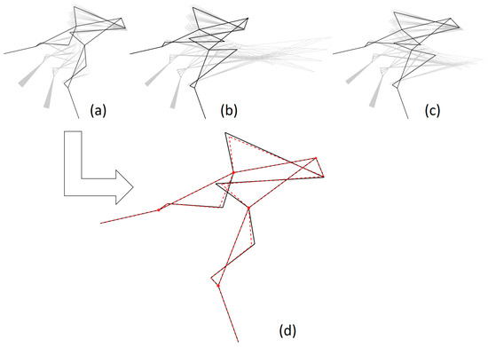 In a graphical synthesis process, is determined by drawing the bisector of the segment that joins the representation joints and (see Figure 5c). Consequently, the lengths of and are also determined.