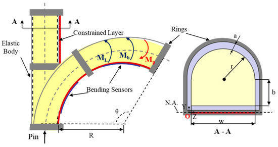 MP is the bending moment induced by the input pressure Pin, comprising the bending moment of the hemi-circular shape MHC and rectangle shape MR. The geometric parameters and their values are shown in Table A1. The sum bending moment of the applied pressure can be described as follows: