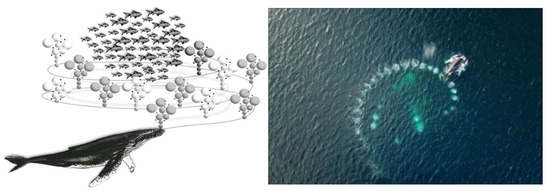 The predation process, as illustrated in Figure 1, commences with the whale executing a spiral descent from the seabed, emitting a profusion of bubbles in diverse dimensions. These bubbles rise buoyantly toward the water’s surface, amassing to create an enveloping, cylindrical mesh that encapsulates the intended quarry. In a strategic ascent, the whale spirals upward, incrementally constricting the parameters of the encirclement. This deliberate motion culminates in the whale’s arrival at the precise coordinates of the targeted fish school, where it engages in foraging activities.