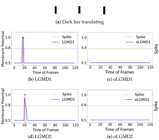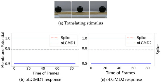 Figure 6. Illustrations of translating stimulation and results: oLGMD1 and oLGMD2 are inhibited against translating.