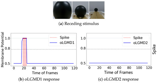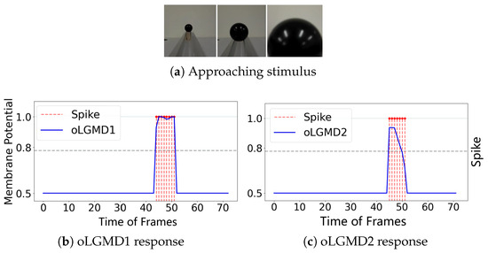 Figure 7. Illustrations of ball approaching test results of oLGMD model: both oLGMD1 and oLGMD2 respond strongly to the stimulation.