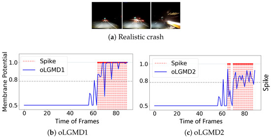 Figure 11. Daylight car crash tests illustrate that both the oLGMD1 and oLGMD2 models can precisely predict imminent collisions in bright, daytime conditions.