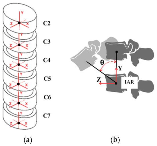25], the kinematics of the cervical spine can be analyzed from the point of view of a functional spine unit, which consists of two adjacent vertebrae and the soft tissue that connects them.