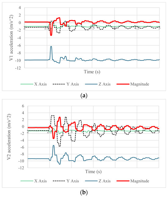 Figure 10a,b show the acquired accelerations of the vertebrae’s motion during the forward and backward motion of the neck with a maximum acceleration magnitude of 3.7
