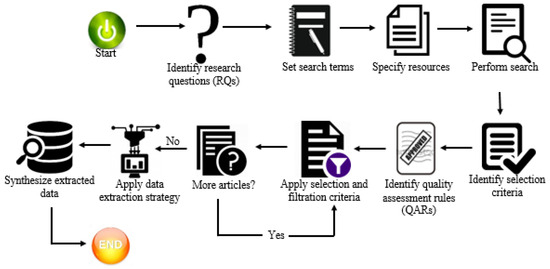 The systematic literature review (SLR) is conducted by following Kitchenham and Charters’ framework [9]. Kitchenham and Charters’ SLR methodology includes three phases, which are planning, conducting, and reporting, and each phase contains several stages. Figure 1 represents the overall process.