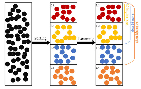 LLSO is a variant of PSO, so here we mainly discuss the differences between them [33], and the population structure of LLSO is shown in Figure 1.