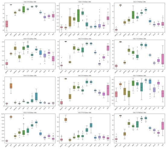Boxplot of MSSTO and competitor algorithms on the CEC-2017 test suite (dimension = 100).