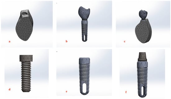 - Sun, F.; Lv, L.T.; Xiang, D.D.; Ba, D.C.; Lin, Z.; Song, G.Q. Effect of central screw taper angles on the loosening performance and fatigue characteristics of dental implants. J. Mech. Behav. Biomed. Mater. 2022, 129, 105136. [Google Scholar] [CrossRef] [PubMed]