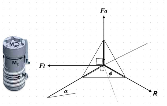 - An axial force Fa: This force was exerted on the lower contact surface of the screw, opposing its advancement during the tightening process.