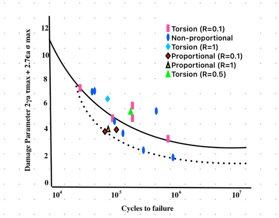 - Zhu, P.-N.; Gao, J.-X.; Yuan, Y.-P.; Wu, Z.-F.; Xu, R.-X. An Improved Multiaxial Low-Cycle Fatigue Life Prediction Model Based on Equivalent Strain Approach. Metals 2023, 13, 629. [Google Scholar] [CrossRef]