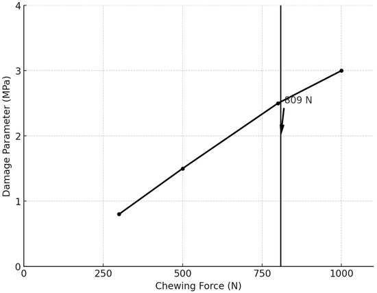 3.3. Correlation Between Chewing Force and Fatigue Damage
