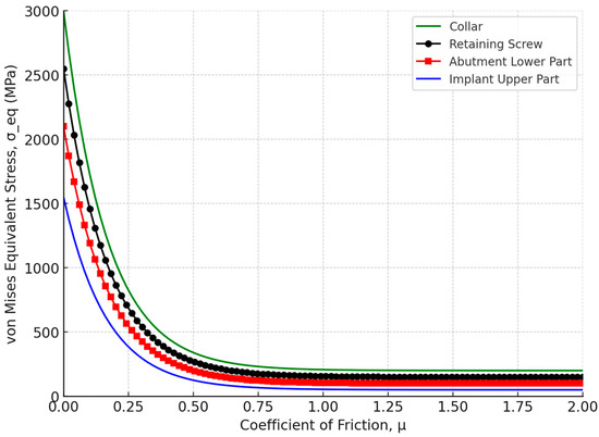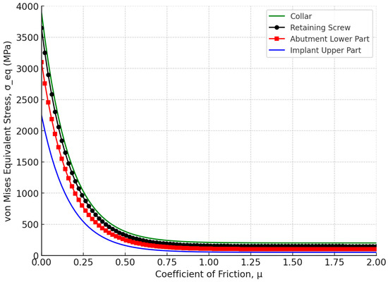 - Hamed, M.T.; Hashem, A.B.H.; Naguib, G.H. Influence of Coefficient of Friction on Stress Distribution in Implant Components and Surrounding Bone. J. Res. Med. Dent. Sci. 2019, 7, 48–53. [Google Scholar]