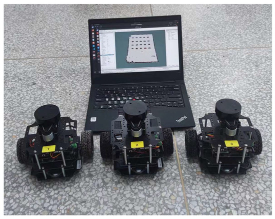 The multi-robot utilized in the real robot experiments is depicted in Figure 13. The hardware includes the main control board (Raspberry Pi 4B), LIDAR (YDLIDAR X2L), motor drive module, inertial measurement unit (IMU), two-wheel differential chassis, laptop, and router.
