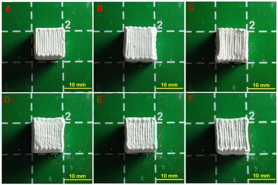 When PVA was used in the 3D printing, it was dissolved in DI water for 4 h, heated to 60 °C, and kept for 4 h; then, it was held at 98 °C for 4 h to obtain a 10 wt% PVA aqueous solution [32,33]. HAWs and HA powder with a ratio of 4:6 were added to the aqueous solution of PVA at a mass ratio of 1:1 and mixed for 30 min to obtain a HAW/HA ink. The HAW/HA scaffolds reinforced with whiskers were fabricated using the HAW/HA ink and were denoted as 4-HAW/HA-PVA.