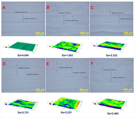 Surface morphology and roughness of (A) 0-HAW/HA, (B) 1-HAW/HA, (C) 2-HAW/HA, (D) 3-HAW/HA, (E) 4-HAW/HA, and (F) 5-HAW/HA.
