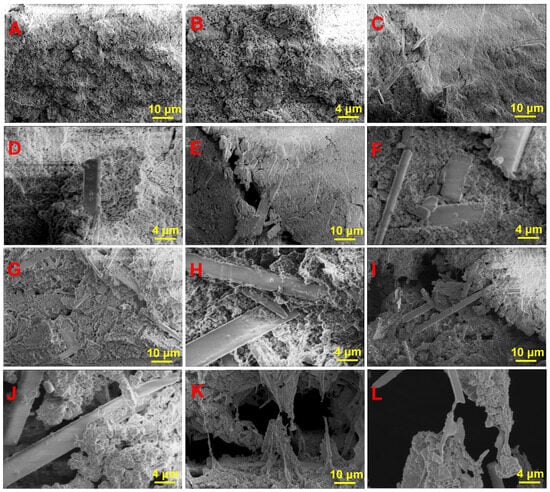 - Cao, K.; Liu, G.; Li, H.; Huang, Z. Mechanical Properties and Microstructure of Calcium Sulfate Whisker-Reinforced Cement-Based Composites. Materials 2022, 15, 947. [Google Scholar] [CrossRef]
