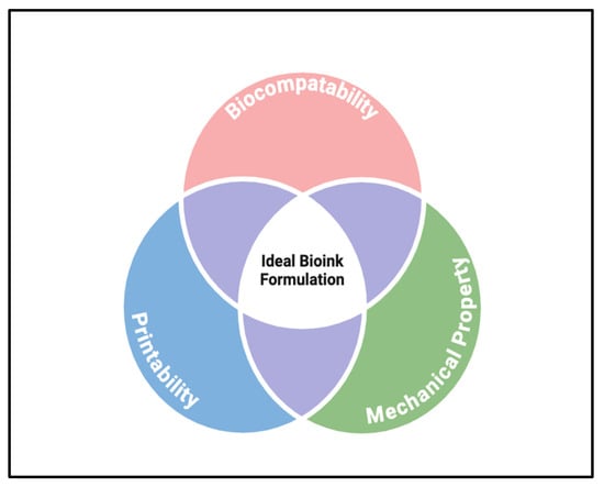Diagrammatic representation of the major requirements for a successful bioink. Created in BioRender.