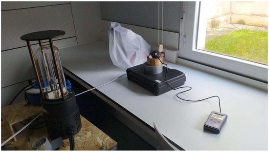 Furthermore, it has been assumed that the intensity of this radiation decreases proportionally with the square of the distance [39]. Therefore, to achieve a SARS-CoV-2 deactivation rate of 99%, the target radiation level has been set at 500 J/m2. Based on these assumptions, the radiation spread of the lamp was calculated using Equation (1).