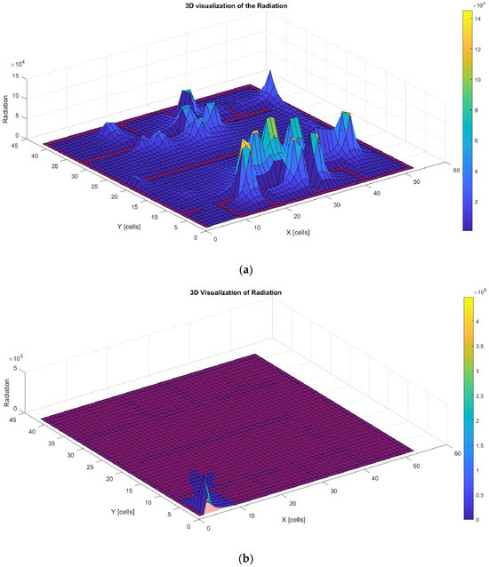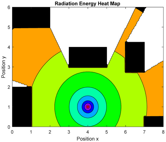 The radiation matrix, which represents the radiation at each point of the virtual environment where the robot operates, is calculated using Equation (6) [38].