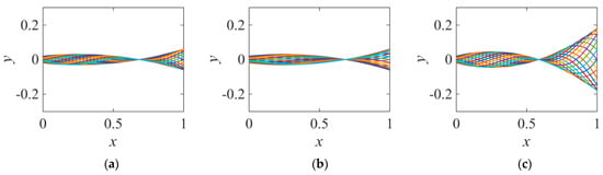 In order to more intuitively demonstrate the process of the travelling wavy motion, the diagram of foil’s deformation during one complete period under various combinations of motion parameters is shown in Figure 2.