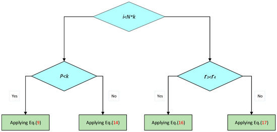 Here, and are two vectors representing randomly generated values within the interval [0, 1]. Equations (16) and (17) are randomly swapped according to the following formula: