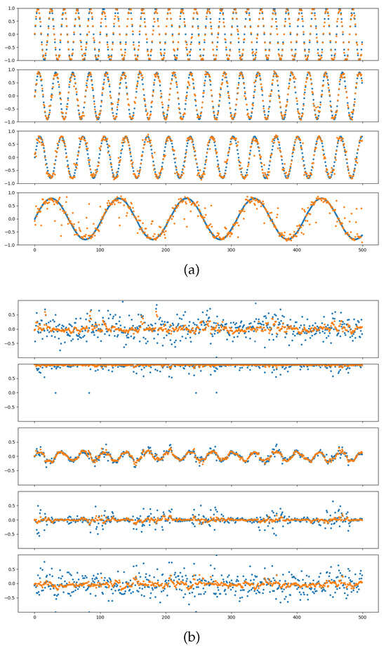 We performed multiple rounds of network training on the dataset, adjusting the level of noise introduced in each round to develop a stable encoder-decoder model. The results of the training process are presented in Figure 4, where the blue line represents the actual values and the yellow line indicates the fitted values. The figure demonstrates that the neural network effectively captures and fits the complex structures within the data.