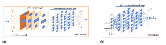 The actor–critic architecture is employed in most RL algorithms to effectively address policy gradient-based problems. The actor network will eventually train a policy, , which is the controller required for the tracking task. This policy is refined employing the policy gradient approach under the guidance of the critic network. Concurrently, the critic network needs to be trained to precisely assess the outputs generated by the actor network.